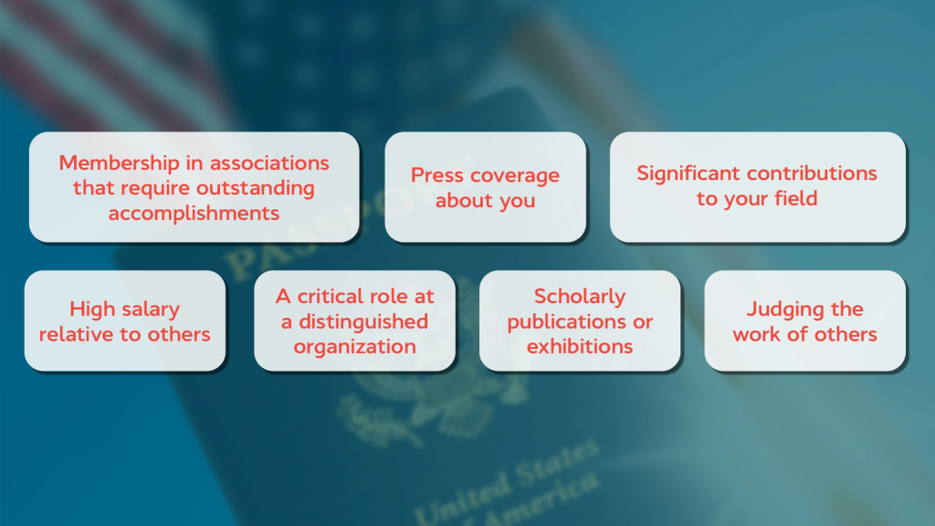 USCIS looks for solid, factual evidence that you are recognized in your field. To qualify, an applicant typically needs to meet at least three of the following criteria: